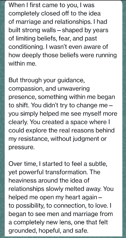 I help women who feel emotionally stuck or disconnected — whether in life, love, or within themselves — to heal deeply, build self-worth, and reclaim their inner power through mindset shifts, energy healing, and aligned action.